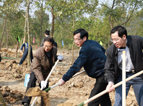宁海新闻网讯 近日,县农业银行城区支行党支部组织全体党员来到海拔600多米的黄坛镇里天河村的大平头山上,开展义务植树造林活动,为早日实现我县“大森林”“大景区”的建设目标,出一份力。(惠广亮 章亚丽摄)