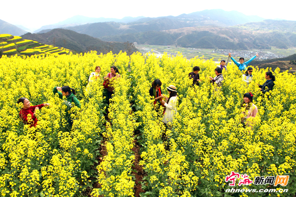 宁海新闻网讯 昨日上午,一群来自台州与宁波等地的游人正在桑洲观赏油菜花。时下正是油菜花盛开季节,近几日来,每天都有近百名来自附近县市的游人驱车来到桑洲山区观赏油菜花,享受春天。 (李江林童晓静摄)