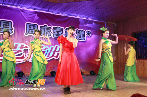 宁海新闻网讯 为全面推进城乡和谐发展,繁荣城乡文化生态互动融合,促进文化资源共享,日前,由县文广新闻出版局主办、县文化馆承办的“文化靓县——周末文化喜相逢”活动将在全县范围巡回展开,旨在让更多的农村群众享受到文化惠民工程。图为演艺人员正在胡陈西翁村演出现场。 (李江林胡余杰摄)