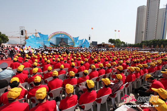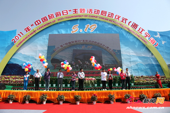 宁海新闻网快讯 (记者 惠广亮)5月19日,2011年“中国旅游日”主题活动启动仪式在《徐霞客游记》开篇地浙江宁海县举行。第九届中国徐霞客开游节同时开幕。启动仪式由国家旅游局、浙江省人民政府主办,宁波市人民政府、浙江省旅游局承办,宁波市旅游局、宁海县人民政府执行承办。全国人大常委会副委员长路甬祥宣布中国旅游日主题活动启动。图为开幕式盛况。