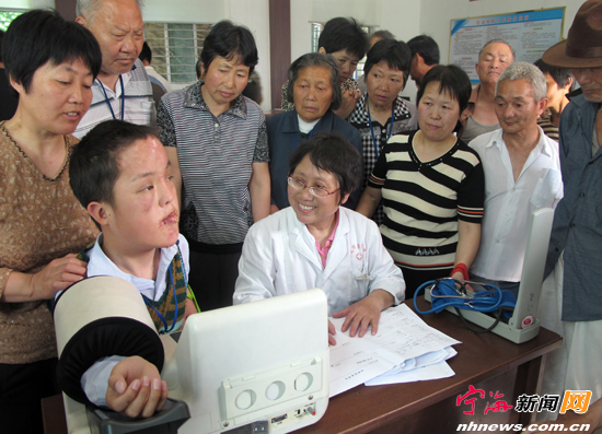 宁海新闻网讯 日前,宁波市残疾人康复中心的16名医护人员来到前童镇开展帮扶农村贫困残疾人活动,他们不辞辛劳,为全镇300多名残疾人进行了免费健康检查,受到残疾人的好评。图为康复中心的专家正在为梁皇村的王欢来测量血压。(李江林严洁摄)