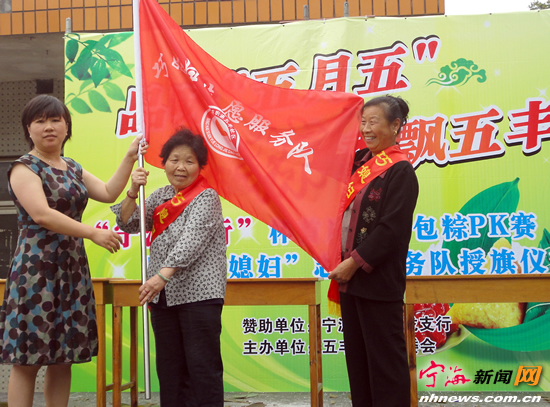 宁海新闻网讯 日前,五丰社区联合宁波银行举办首届宁波银行杯“巧媳妇”志愿服务队授旗仪式,同时成立了巧媳妇志愿服务队,将社区内热衷于公益活动、心灵手巧的妇女组织起来,开展编织、缝纫裁剪、烹饪等为民服务项目,以更好地为辖区居民服务。(李江林杨晨摄)