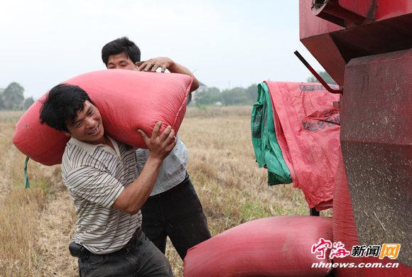 宁海新闻网讯 6月15日,长街镇种粮大户柴世明正利用天气好转时机抓紧抢收小麦。由于遭遇连续降雨天气,给小麦收割带来较大影响,许多小麦在雨中出现倒伏霉变现象。连日来,全县广大农户利用间隙性晴好天气及时抢收小麦,对已收割入库的小麦,开足所有的烘干设备,24小时运转进行烘干,防止霉变,力争将损失降到最低。据县农林部门统计,截至15日,我县还有6000亩左右小麦还未收割。 (记者惠广亮摄) |
