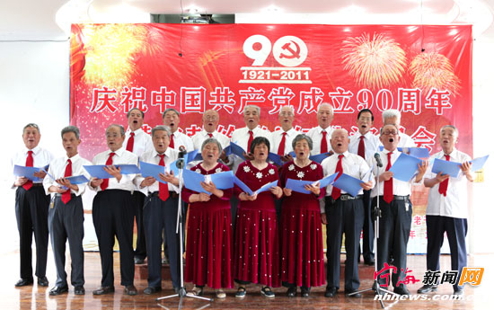 宁海新闻网讯6月21日,县委老干部局、县老年大学共同举办庆祝中国共产党成立90周年“赞歌献给党”红歌演唱会。《红梅赞》、《人民军队忠于党》、《映山红》……一首首人们耳熟能详的红歌唱出了党员群众的理想和信念、朝气与激情,表达了对党和伟大祖国的无限热爱与诚挚祝福。图为县委老干部局的离休干部们正在激情演唱经典歌曲《没有共产党就没有新中国》。(惠广亮 陈帅兵摄) |