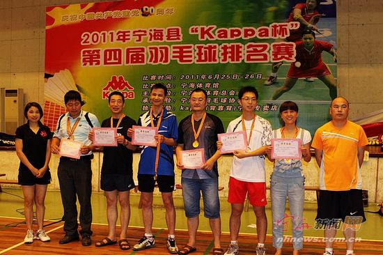 宁海新闻网讯 2011年县“Kappa杯”第四届羽毛球排名赛日前在县体育馆落下帷幕。本次比赛吸引了全县近100名“羽”林高手参加,是我县羽毛球单项赛事规模最大、参赛人数最多的一届比赛。在两天的激烈竞赛中,王志宇、杨依怡分别摘得男女单打桂冠,男子双打第一名荣归林双进和潘闻瀚。(记者 水玲玲 摄) |