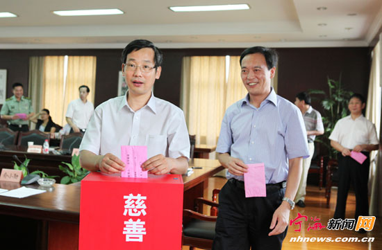 宁海新闻网讯 昨日,王剑侯、褚银良、戴霖军、俞小勋等县四套班子领导率先垂范,带领县委、县人大常委会、县政府、县政协四大办公室等部门的干部积极响应县慈善总会发出的号召,进行了“慈善一日捐”,为我县慈善事业作贡献,首日就募集善款105300元。(记者惠广亮摄