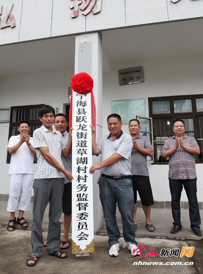 宁海新闻网讯 日前,跃龙街道草湖村正式挂上了村务监督委员会的牌子。为进一步深化农村党风廉政建设,密切党群干群关系,促进农村社会和谐稳定,我县各乡镇(街道)的363个行政村,在本月将全部挂上村务监督委员会的牌子,这意味着各村村务监督委员会工作开始正常、规范运转,村监委会成员将全程参与、审查和监督村内各重大事项的执行情况,村级财务将更透明,让村民心里更明白。(惠广亮华建平摄) |