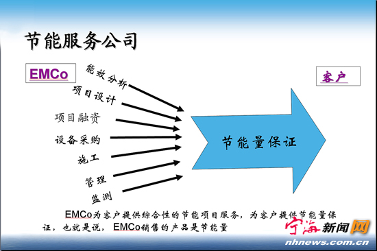 县节能办相关负责人介绍,合同能源管理是一种全新的节能服务机制,即节能服务公司与用能单位以契约形式约定节能改造项目的节能目标,节能服务公司作为投融资主体,为实现节能目标向用能单位提供必要的服务,用能单位以节能效益支付节能服务公司的投入及其合理利润。节能服务公司为用能单位节能改造提供综合诊断、节能项目设计、设备选购、安装调试、维修保养等一条龙服务;用能单位在不承担技术和风险的同时,既降低了运行费用还获得了节能效益。因其具有“零投入、高回报”的优势,正逐步被耗能企业所接受,具有广阔的发展空间,是一种值得大力推广的市场化节能机制。 早在上世纪90年代中期开始,这种耗能企业“零投资”就能获得节能收益的新模式被引入中国,很快被人们看好。“我帮你度身定做水电气等能源的全面节能措施,你再用节能收益支付我的投资‘报酬’。”整个过程中耗能单位不用花一分钱而坐享收益。近两年来,合同能源管理快速发展,去年国务院及相关部委更是密集出台了一系列关键的税收、财政政策。数据显示,“十一五”期间我国节能服务产业持续快速发展,合同能源管理项目投资累计达683.95亿元,形成年节能能力2242.68万吨标准煤,年减排二氧化碳6106.7万吨。经过“十一五”的实践,节能减排得到了各行各业的普遍重视。 宁海华跃节能环保智控技术有限公司有关负责人认为,从合同能源管理模式本身来看,它在推进全社会形成节能之风方面具有诸多优势。一是合同能源管理模式符合市场经济规律,易于推广。合同能源管理是个多赢的机制。用能企业不需投资就能实现节能降耗,无技术风险,项目的节能率一般在10%到40%,最高可达60%以上;节能服务公司通过分享耗能企业节约的部分用能资金实现盈利;金融机构通过向节能服务公司提供贷款获得利润,并提高其绿色信贷规模;政府部门通过组织实施合同能源管理项目,有利于促进节能目标的实现。二是国家和地方政策保障,便于操作。“十一五”以来,国家相关部门接连出台了《关于加强节能工作的决定》(国发[2006]28号)、《中华人民共和国节约能源法》、《公共机构节能条例》、《关于加快推行合同能源管理促进节能服务产业发展意见的通知》(国办发[2010]25号)及一系列相关配套文件,市、县均出台了《节能专项资金使用管理办法》,鼓励推广合同能源管理,扶持节能产业发展,其扶持力度大于一般节能改造项目。