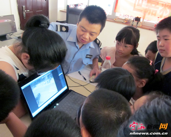 宁海新闻网讯 桃源街道金桥社区外来务工人员众多,暑假里,有许多外来务工人员的子女像候鸟一样来宁海与父母团聚。连日来,该社区为丰富这些“小候鸟”们的暑期生活,特别举办了“小候鸟”夏令营公益活动,夏令营第一课就是趣味交通安全培训。图为交警老师正在给“小候鸟”们讲解交通安全出行知识。 (惠广亮周群芬摄) |