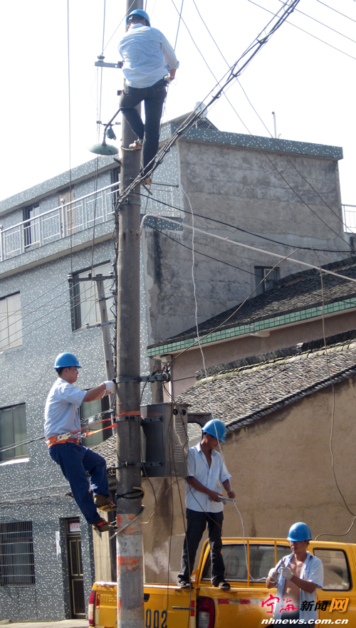 宁海新闻网讯 近日,县路灯管理所工作人员在坑龙王村进行路灯维修。为确保夜间道路正常照明和夜间居民出行安全,县路灯管理所工作人员对塔山社区辖区内的电线线路设备进行安全检查维修,并做好电线老化等安全事故防范工作,尽力消除安全隐患。(李江林邬静兰摄)