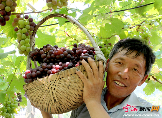 宁海新闻网讯 昨日,大佳何镇马家自然村葡萄种植专业户马人达正在果园里摘葡萄。今年58岁的马人达,10年前在镇农技人员的帮助下,从外地引进葡萄新品种进行试种,第二年就获丰收。从此,他一直保持每年都有一个新品种试种的记录,并且几乎年年都会淘汰收益不好的品种。目前他葡萄园的主打品种是“甬优1号”和“黑旋风”等优质品种,销售价格达到每公斤20多元,收益要比种植其他葡萄品种高出一倍左右。(惠广亮 何琼摄)