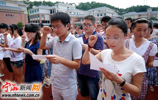 宁海新闻网讯 前日上午,2011年新教师宣誓仪式在星海中学举行,经过一周的职业素养、教学基本技能、课改理念等内容的岗前培训,共有251名今年招聘的新教师宣誓上岗。据悉,近年来,我县着力打造一支高素质教师队伍,通过赴高校洽谈、对外引进、社会招聘等方式,努力扩大优质师资,为教育系统注入新的力量。目前我县在职教师已近5000人。 (李江林 陈云松摄) |