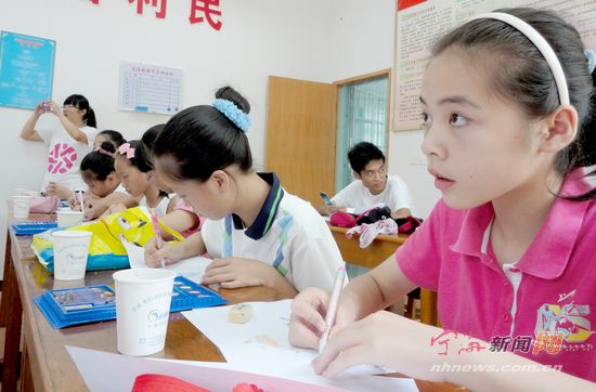 宁海新闻网讯 为培养孩子们从小树立保护资源、节约资源的低碳环保意识,让一个孩子去影响一个家庭,让一个家庭去影响整个社会,使全社会共同来关注低碳环保生活,连日来,滨溪社区暑期假日课堂开设以“绿色宁海、低碳环保”为主题的绘画课堂。宁大商学院的大学生老师为学生们讲授了许多环保低碳知识,并教他们用手中的画笔来描绘每个人心中的绿色家园,畅想低碳环保的美好生活。 (惠广亮 林应 摄) |