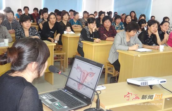 宁海新闻网讯 9月26日是世界避孕日,县计生指导站联合桃源街道计生办在华庭社区开展“爱,不要伤害——安全避孕远离流产”专项活动。县计生指导站专家林素芬为辖区60余名育龄妇女上了一堂生殖健康与避孕知识的专题讲座,通过讲解与实样展示,使大家对各种避孕措施有了更直观的了解。同时,工作人员还走上街头,展出宣传相关版面,发放宣传资料及避孕药具等。(姚亮 陈浩良 摄) |