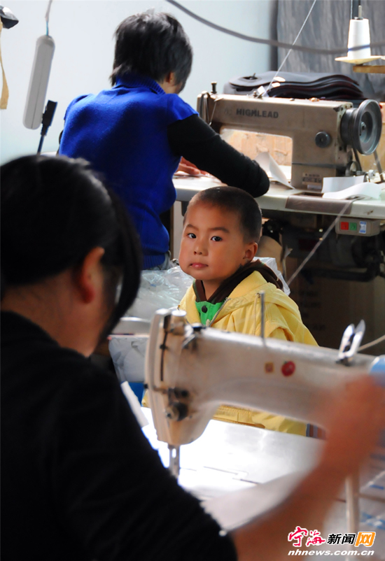10月6日,在宁海县力洋镇海头村的一个乡村加工点,带着孩子上班的农村妇女们在认真工作。浙江省宁波市宁海县过去是一个农业县,农民外出打工多,“空心村”现象比较突出。当地政府采取多种手段,通过发展农家乐、乡村旅游、成立工业加工点等,促进农民在家门口创业致富,从根子上逐步破解“空心村”问题。