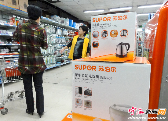 宁海新闻网讯 国内知名厨具品牌苏泊尔日前被工商部门查出不锈钢锅等数十个型号产品存在锰含量超标,镍、铬含量不达标等问题,身陷质量门。虽然苏泊尔发公告否认了上述质量问题,称相关产品经国家相关机构检验均为合格,但消费者对此仍持质疑态度。记者昨日在城区一些超市看到,部分消费者打算购买其他品牌的炊具,也有一些消费者表示,还是信赖苏泊尔等大牌子,对一些名不见经传的产品更不放心。(记者惠广亮摄) |
