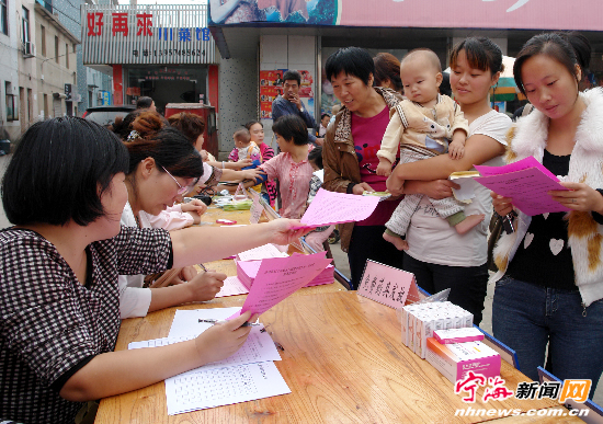 宁海新闻网讯 为强化流动人口市民化管理和均等化服务,日前,跃龙街道计生办联同县计划生育指导站在范家村开展“流动人口免费宣传、培训、服务”活动,受到当地流动人口育龄妇女的欢迎,共有300余人进行了孕环情检查,领取避孕药具400余盒。工作人员还对她们进行了面对面的宣传、培训服务,发放相关宣传资料800余份。(惠广亮华建平摄) |