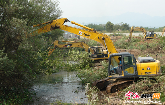 宁海新闻网讯 昨日上午,10多台大型工程挖掘机、推土机正在清理茅草和溪边杂树。在跃龙街道、县有关部门和范家村干部群众共同努力支持下,县重点实事工程之一的一职高迁建二期工程顺利进场施工。该工程总投资4000余万元,建筑面积为1.3万平方米,主要建设项目有学校操场、食堂和学生宿舍楼等,整个工程将于2012年底全面竣工。(李江林华建平摄) |