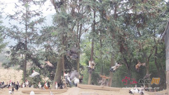 营养丰富的鹊山鸡蛋 宁海新闻网讯 梅林皂浦自然村一个山坳里,有一片偌大的鸡场。鸡场内,一群群鹊山鸡在悠闲地啄食、嬉戏。口哨一吹,几十、上百只鹊山鸡“呼”地一声,漫天“飞舞”。这就是鸡司令胡财陆的生态养鸡场。一年来,他凭着过人的胆识,从县外引进鹊山鸡,刻苦钻研,克服种种困难,发展山地生态养鸡,成了名副其实的“鸡司令”。 《致富经》里看中鹊山鸡 鹊山鸡外表美观,羽毛色泽光亮,鸡肉肉质鲜美。近年来,养殖鹊山鸡在丽水等地颇为流行。胡财陆与鹊山鸡结缘,还要从他的爱好说起。 胡财陆,西店璜溪口人,今年46岁。家里经营着一家塑料颜料店,依靠当地的经济产业,生意做得风生水起,生活也过得比较安定。平时,胡财陆比较喜欢看一些致富电视节目,像央视七套的《致富经》等栏目是他每天必看的节目之一。同时,他个人又比较喜欢山林,总是琢磨着能在山林养殖动物致富。2010年,丽水一位农户养殖鹊山鸡的新闻上了央视《致富经》栏目,看到这一消息的胡财陆相当兴奋,他也梦想着能跟节目里的主人公一样,拥有自己的一片林地和山鸡。于是,他马上上网搜索鹊山鸡的相关信息,查找丽水等地养殖户的信息,并独自一人驾车前往丽水进行考察。在丽水,他找到了当地的一位养殖大户,参观了他的养鸡场,感受到了鹊山鸡给当地农户带去的财富,更加坚定了他进军鹊山鸡养殖的决心。 回到家后,胡财陆和家人说了他的计划,得到了妻子的支持。妻子一人支撑起颜料店的生意,胡财陆开始寻找适合鹊山鸡养殖的场地。恰逢此时,他的一个朋友在梅林皂浦附近的山坳里承包有30亩的林地,听说胡财陆想养鸡,就推荐给他。经过实地查看,胡财陆觉得这里的植被丰富,非常适宜鹊山鸡养殖,便决定在此建设养鸡场。 |