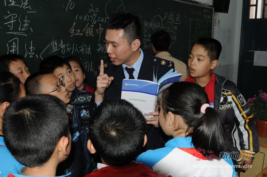 宁海新闻网讯 近年来,县国税局抽调青年干部组建了一支税校师资队伍,并组织开展了一系列符合学生特点、适合学生参与的活动,从小开始培养他们依法诚信纳税意识。如授课、带领小学生参观企业、到办税服务厅开展“一日税官”体验等。图为我县红领巾税校辅导老师正在给实验校区的学生讲解税法知识。 (汉茗 谢建军 袁勤摄) |