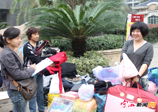 宁海新闻网讯 11月6日,跃龙街道怡惠社区慈善工作站组织雨睛美甲、太乙推拿等社区联合工会成员单位在街头开展“送温暖、传爱心”捐衣捐物公益活动,得到了辖区居民的爱心支持。活动现场气氛热烈,党员、志愿者和市民们纷纷送来御寒衣服、被褥等。这些衣被将被送到我县社区外口之家新市民子弟和云南、贵州等地的困难群众手中。(惠广亮 华立峰摄) |
