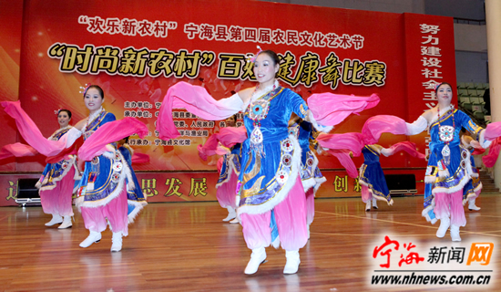 宁海新闻网讯 日前,“欢乐新农村”第四届农民文化艺术节活动之一“时尚新农村”百姓健康舞比赛在县体育馆举行,来自全县各乡镇(街道)的17个代表队参加了比赛。本次比赛以百姓健康舞舞种为基本内容,分规定舞种和自选舞种两部分,各代表队在自选舞种部分表演了各具特色的百姓健康舞,他们以饱满的热情、遒劲的舞姿充分展现了百姓健康舞的时尚性与韵律美,舞出了农民群众积极向上的崭新风采。最后,跃龙街道、桃源街道代表队分获冠亚军。 (惠广亮徐荻摄) |