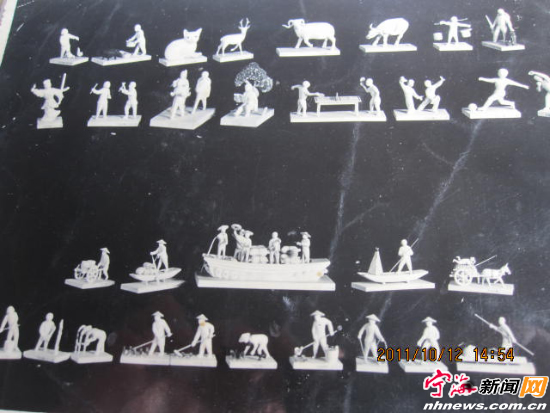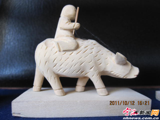 徐永水新创作的白木小件作品 一、 200年前无意中创造了白木小件的这个宁海匠人,没有留下名字。随后有记载的传人便是100多年前一个叫沈中泽的师傅。再后来便是徐永水的师父王大外了。徐永水差不多是白木小件的第四代传人。他是1937年生人,18岁时,他去了王大外那里学习白木小件制作。徐永水说,当时去学白木小件并没有什么高尚想法,只是为了学一门手艺糊口,18岁了,也应该像他的哥哥一样为这个家庭分担了。随后,他便在王大外的工艺生产合作社里做了6个月的专业学徒。当学徒的时光是最辛苦的,身边没有亲人朋友,只有严厉的师父和冰冷的凿刀,日子也因此显得异常枯燥、单调。尽管这样,徐永水却从来没有放弃过,在他心里,只有一个念头,就是能够早日出师拿工资,补贴家用。于是,他是那些学徒里最用心的一个,师父雕刻时,他总是观察得最仔细,晚上,别人睡觉了,他却仍旧一个人在那里琢磨如何给人物做造型。 6个月的学徒生涯很快过去了,师父也开始让他上手去做完整的产品。 徐永水说,当学徒是没有工资拿的。所以,自己真正拿工资是学习白木小件的6个月后。很快,徐永水的表现便让合作社的其他人感到吃惊了。这个刚满学徒的18岁的年轻人干起活儿来总是那么的快。别的熟练工人一天可以做六七个小件作品,可他一天却能做12个,几乎是快了一倍。这让大家都对这个年轻人刮目相看。但徐永水自己却并不吃惊,他知道自己的能力。事实上,早在学徒3个月的时候,他就已经能够独立完成作品了。之后的三个月,他完全是在练习,而不是学习。徐永水说,他总感觉做白木小件对自己来说,不算一件难事,无非就是学会用凿子。一块白茶树的木头,用铜丝锯锯出大概形状的模具,然后将模具固定住,用凿子一凿一凿凿出来便可以了。自己之所以速度比别人快,关键也就是在这凿上。当学徒的后三个月,他练习的便也是这凿子。这段练习,让他对雕刻有了一种独特的眼光。比如一块没雕刻过的木头放在眼前,他就能清晰地分辨出上面的轮廓,知道该在哪里下凿,这一凿的深浅如何。正因为这样,别人需要推敲两凿完成的地方,他只需要一凿。凿数少了,时间省了,完成作品自然也快了,多了。 18岁的徐永水引起了师父的注意,一方面,他看到了徐永水在制作白木小件上的天赋,另一方面,他却也要担心另一件事。因为当时手艺工人的工资是按照件数计算的,按照徐永水的这个速度,他到月底将能拿到全合作社最高的工资,这样的事情在讲究论资排辈的手艺人圈子里,是不允许发生的。师父是合作社的负责人,自然不能不考虑这样的问题。于是,他便跟徐永水说,让他做得慢些,不要那么快。可此时徐永水的雕刻风格已经形成,已经慢不下来了,于是师父又想了另外一个办法,一个月让他做三个礼拜,还有一个礼拜则放假让他回家休息。 到现在,徐永水还能清晰地记得他第一个月的工资。第一个月的工资是45元。他回家将这钱全部交给了自己的父母。这是他人生第一次挣工资。从此,他便成了家里最重要的经济来源。徐永水说,现在的人可能对45元这个工资没什么概念。在1956年,一个乡长一个月的工资是46元,而自己一个18岁刚满学徒的人第一个月就拿到了和乡长一样的工资。很快,他的工资便涨到了60元,等到1959年,他的月工资已经达到了90元,而当时县委书记的月工资也只有60元。从工资的比较不难看出那是徐永水人生最惬意的一段时光,年轻,有活力,又有一份非常好的工作,一份非常好的收入。那时的他醉心于白木小件的雕刻,每个月那一礼拜的休息时间,他便回到家里,帮着父母打理些田里的农活。生活呈现出一副游刃有余的姿态。1959年,宁海、象山并县时,徐永水甚至还作为象山县代表参加全国工艺美术代表大会,把“白木小件”的精品带到了故宫博物馆,参加展出。而那时,也是白木小件最红火的一段时光,合作社变成了宁海工艺美术厂,当时整个美术厂共有40多个人在做这个活儿,一个月的出口量可以达到一万多件。
