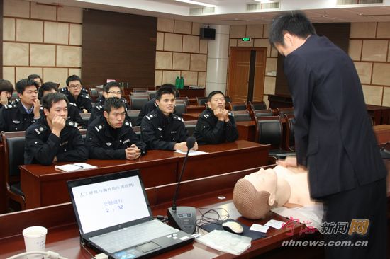 针对我县私家车猛增,交通事故多发的现状,为更及时地挽救一些伤者生命,日前,县公安局交警大队邀请省科普健康教育中心专家为民警、协警讲授心肺复苏、人工呼吸、创伤止血、骨折伤员搬动、伤口包扎等方面的急救知识,以增强交警在交通事故现场处置中的医疗急救能力。