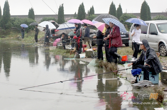 宁海新闻网讯 近日,县首届“邮政杯”职工垂钓团体赛在胡陈港鱼塘圆满收竿。此次钓鱼比赛由县职工体育活动协会主办,共有县邮政局、水利局、疾控中心等13个代表队、80余名选手参加,一职高、运输总公司、供电局代表队分获团体前三名。 (惠广亮 薛国苗 摄)