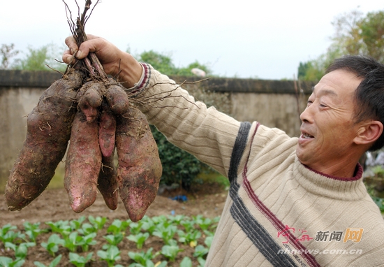 宁海新闻网讯 近日,家住跃龙街道的王师傅在城郊白峤岭山上采挖到一株野生山药。该株野生山药总重量达6.25公斤,引来了附近村民争相观看,啧啧称奇。老王说,他让种药材的人看过,这是山药中的一个地方品种,营养丰富,且药用价值很高,既可作餐桌上的佳肴,也可作保健药材。 (惠广亮 华建平 摄)