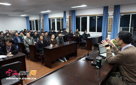 宁海新闻网讯 为更好地学习贯彻党的十七届六中全会精神,近日,跃龙街道兴圃社区邀请宁波市委党校教授张荣昌给辖区全体党员及“清风俱乐部”会员授课。(李江林张琼摄)