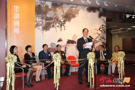 文/王海明 气势磅礴,大师精品惊艳香江 “一边连接着唐宋绘画的博大气度,一边开创了现代绘画的雄伟气象”,“一边是宏大、瑰丽雄奇的气象,一边又不离中国绘画的核心”,“在他的笔下,每一块石头,每一片荷叶都蕴含着浩然之气”……这是中国美院院长许江在香港艺术馆举行的“墨韵国风——潘天寿艺术回顾展”开幕式上一番激情澎湃的致词(毋宁说是演讲),却也道出了前往观瞻和领略国画大师潘天寿艺术作品风采的观众们共同的感受和心声。 11月24日傍晚,维多利亚港湾华灯初上,将“东方之珠”——香港这个国际大都市的繁华辉映得美轮美奂。而位于维多利亚港湾畔的香港艺术馆,同样是灯火璀璨,金碧辉煌。 作为香港艺术馆50周年馆庆的首个亮点节目,由香港康乐及文化事务署、中国美术学院及潘天寿基金会联合主办的“墨韵国风——潘天寿艺术回顾展”当天晚上在此开幕,更是让这里一时群贤毕至,少长咸集。香港民政事务局局长曾德成,中央美术学院院长、潘天寿之子潘公凯,中国美术学院院长许江,潘天寿基金会执行副会长胡剑芬,康乐及文化事务署署长冯程淑仪,香港艺术馆总馆长邓海超……政界名流、艺苑中人,以及两地众多的丹青爱好者,凤凰卫视、大公报等著名媒体记者济济一堂。而无论是展馆外高墙上引人注目的以潘天寿指墨画代表作“秃鹰”制成的巨大海报,及展览馆门口一侧整排的浓墨重彩、笔墨酣畅的“耕牛”等画图,还是展馆里琳琅满目的丹青画卷,都让这个流光溢彩的现代化都市增添了一份浓郁的文化艺术气息。墨韵国风,翰墨飘香,随着维多利亚港湾的海风四处弥散、漫溢…… 此次展览,一共展出63件(组)潘天寿不同时期的书画代表作及相关展品,其中既有早年受吴昌硕影响的《枯竹图》和上世纪二十至三十年代在上海及杭州任教时期的山水画,亦有他享负盛名的指墨秃鹰和荷花,更有经典巨幅如《铁石帆运图轴》、《夏塘水牛图卷》及《雄视图轴》等珍贵画作,是潘天寿大师作品中精品的集中体现。 开幕式前,香港艺术馆馆长司徒元杰领着众多媒体记者一幅幅观赏大师的作品,一边兴致勃勃地为大家作讲解,尽管用的是地道的香港方言,但丝毫不妨碍我们的理解,从记者们频频颔首的神态和满含敬仰的表情中不难感觉到,一代国画大师其巨大之成就和巍巍之人格,纵然时隔久远,纵然远在祖国的南隅,仍然具有无可争议和无可比拟的影响力。 香港民政事务局局长曾德成在展览开幕式致辞中这样评价:“潘氏是现代中国画坛的杰出人物,对传统绘画艺术的保存、革新和发展都作出了宝贵贡献;潘氏的作品更是深思熟虑、千锤百炼的成果,具备理性营造的特征,其中最为人称道的是其独具匠心的章法布局。他结合理论与实践,以现代化的艺术语言演绎并丰富中国传统绘画观念,创造出了多样化的构图方式,其作品既是力量与美感结合的艺术精华,更是研习中国绘画不可多得的瑰宝。” 在开幕式结束后,观众们走进展览大厅,驻足流连于笔墨雄健、构图磅礡的作品前,静静欣赏,默默赞叹,深深沉醉于艺术大师的宏大气魄和艺术风采中……
