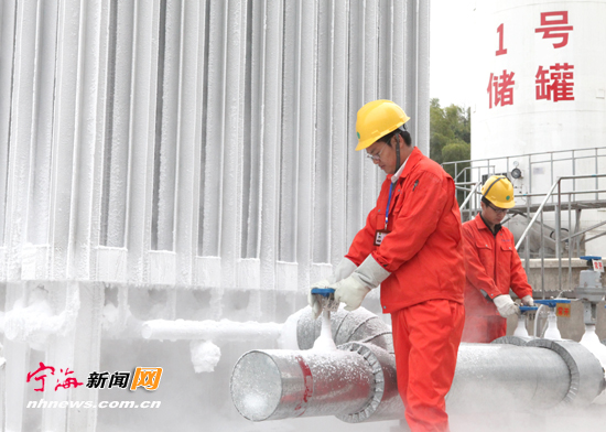 宁海新闻网讯 昨日上午,县管道燃气发展有限公司技术人员正在开闸供气。总投资1000万元建设的液化天然气(LNG)一期工程于昨日调试成功,并正式供气。LNG工程投入运行后,利用储罐缓慢释放天然气进入市政管道并网供气,能够保障全县用户7—10天的用气量,有力缓解了在长输气到达之前的供气紧张状况,切实保障了我县的经济发展和百姓生活用气。(李江林戴维静摄) |
