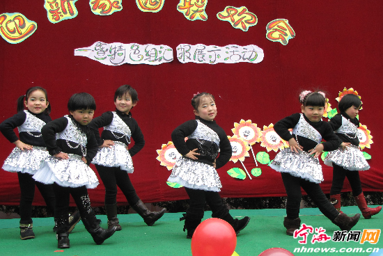 宁海新闻网讯 元旦期间,跃龙中心幼儿园城东园区举办迎新家园联欢会暨特色组汇报展示活动,200多名小朋友以歌、舞、小品、诗朗诵等多种载体庆贺新年到来,500多名家长观摩同乐。(王方徐敏聪摄)