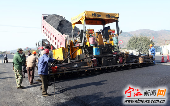 宁海新闻网讯 昨日,施工人员正在宁松线铺浇沥青路面。宁松线胡陈港大桥至车岙港大桥段沥青路面大中修工程,总投资4000余万元,自去年10月中旬开工以来进展顺利,目前,该段沥青路面大中修主体基本完工,标线、标杆及隔离栏等附属工程正在紧张进行。(记者李江林摄)