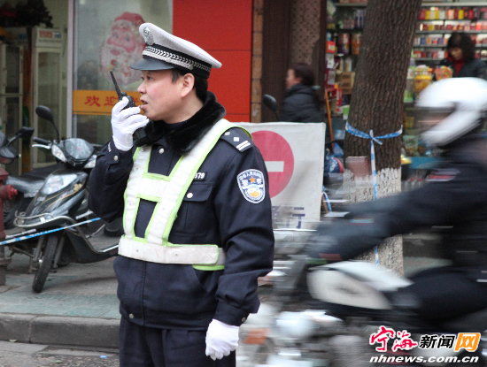 交警维护大会期间交通秩序。