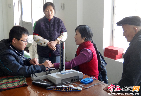 宁海新闻网讯 日前,湖南中医学院学生志愿者在华庭社区老年活动中心开展社会实践活动,并向社区中的老年人提供义务病理咨询及诊治活动,包括测血压、中医诊断、健康咨询及辅助治疗等,深受广大老年人的欢迎。(李江林陈浩良摄)