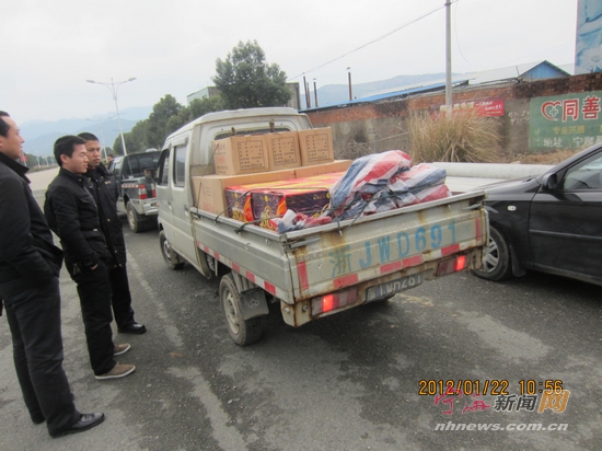 除夕夜,县公管所查获一辆非法运输烟花爆竹车辆。