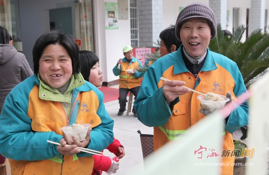 环卫工人品尝爱心汤包
