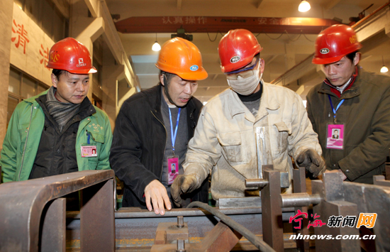 宁海新闻网讯 近日,市、县总工会组织来自宁波市技师协会的焊接、机械等方面专业的5名高级技师,走进宁波如意股份有限公司、宁海大鹏模具有限公司等4家企业,对他们在生产中遇到的门架焊接变形、感温盘管绕制等方面技术难题,开展“专家会诊”,为企业实实在在排忧解难。(惠广亮 赖佩培摄)