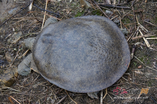 宁海新闻网讯 日前,退休干部应先生把一只重达5.7公斤的巨鳖运到西溪水库放生,围观的人们都说:从来没见过这么大的鳖!应先生老伴最近动了手术,需要休养,有乡下亲戚送来一只大似脸盆的野生鳖,老两口舍不得吃,遂作出了放生的决定。 (一土 杨象平 摄)