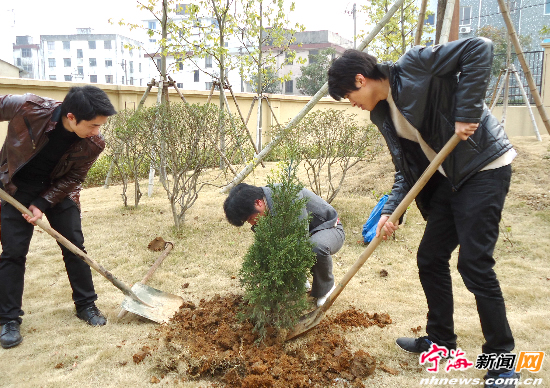 宁海新闻网讯 为积极响应“森林宁海”建设,共享绿色家园,美化绿化居住环境,昨日,跃龙街道松竹社区组织辖区青年党员、居民在大都名苑内举行“播种绿色,收获希望”植树活动。大家你挖坑、我铲土、他扶树苗忙得不亦乐乎,看着小区里增添了许多绿色,每个人的脸上都洋溢着开心的笑容。(惠广亮钟俊俏摄) |