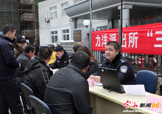 宁海新闻网讯 日前,力洋派出所结合当前公安机关正在开展的“三访三评”及“进村入企大走访、排查矛盾促稳定”活动,开展了便民服务活动。现场发放安全防范宣传资料200余份、接受群众法律和户籍相关咨询69条、电动自行车上牌45辆、征求意见和建议80余条,此举受到了广大群众的称赞。(李江林周国良摄) |