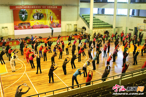 宁海新闻网讯 日前,市柔力球培训班暨“榕树”杯竞技选拔赛在宁海举行,来自各地的柔力球爱好者齐聚“柔力球之乡”进行了友好交流和培训。柔力球运动已经成为广大老年人重要的健身运动项目。(李小明 陈静珠摄)