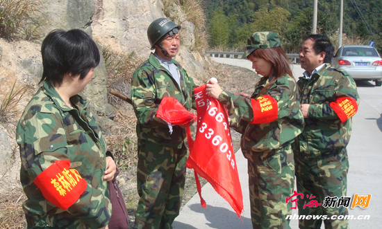 宁海新闻网讯 桃源街道浦西社区居民大都是西溪水库移民,许多居民祖坟仍在西溪区域内。为倡导文明祭祖,确保森林防火安全,连日来,该社区组建森林防火义务小分队,每天深入到西溪水库库区周边的各山林区域进行防火义务巡逻,以及时劝诫与制止使用明火祭祖上坟的行为。(惠广亮俞永朝摄)