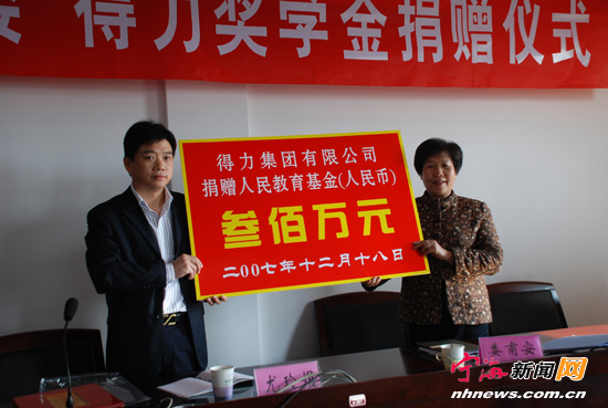 得力奖学金捐赠仪式。 三月,伴随着春的脚步,宁海人民教育基金会第四届理事会走过了6个春秋,开始了新一届的工作。六年来,宁海人民教育基金会发展规模再创新高,对教育的贡献度越来越高;六年来,人民教育基金会见证了宁海人民捐资助学的热情,演绎了一个又一个动人的爱心故事,唱响了爱的主旋律;六年来,人民教育基金会给予了无数贫困学生、优秀师生帮助和关怀,让他们远离悲伤,拥抱梦想,快乐成长,温暖着这座城市。 现在,让我们一起走进基金会,看看那些动人的故事。 暖心:宁海人民扶贫助学有大爱 这里有一组充满浓浓暖意的数据。六年来,人民教育基金会接受社会捐赠、政府补助、基金增值,共计人民币26379.95万元。新建冠名基金32个。透过这组数据,我们能看到宁海人民捐资助学的高涨热情,感受到宁海这座城市的大爱无痕。 企业家争当捐资助学带头人。人民教育基金会有一长串企业家的名字,他们以全新的公益理念,高度的社会责任感和自己模范的行为传递着爱心。在过去的六年中,如意公司捐赠资金达300万元,宁海中学的“智慧门”、“文学社”,胡陈中学、茶院小学的教学楼都留下了如意的足迹。华成阀门捐资250万元,建造了宁海中学的艺术楼,建立了知恩中学的育英奖教奖学金。得力集团捐出了700万元,开展了支教助学的系列活动。万安阀门和宁波九龙机械,捐赠百万资金设立“万龙奖教奖学金”,每年奖励百名在职业教育中的创新人才,开了全省甚至全国民营企业关注职业教育发展的先河。还有宁海县同心通信设备有限公司的“同心励志奖教奖学金”、宁波为富工艺品有限公司的“可为奖教奖学金”。使多少有志向、敢担当的贫困学生有机会荣登红榜,宁波杰友升电气有限公司、宁波捷豹集团有限公司、宁波乐星感应电器有限公司、振宁牧业的助学,圆了多少贫困学子的大学梦。 在企业家模范行动的带领下,年轻一代的创业者把捐资助学作为自己回报社会的一项重要内容,一股捐资助学的热潮在宁海大地悄然兴起。一位宁海籍的杭州小企业家,回乡探亲时捎给基金会50万元,唯一的要求是不宣传不声张。由港、澳、台及海外12家企业组成的外商投资协会已走了7年的助学路,惠及学子800人次,而协会中的宁波派灵公司又以200万元的捐赠,独立为全县贫困家庭的中小学生设立助学金。7位青年同学联合设立“起跑线基金”,使胡陈、岔路等五个乡镇的贫困孩子在同一起跑线上起跑。出口企业“恒瑞”、“紫晶”连续几年为宁海所有的幼儿园孩子送上了价值60万元的文具,用他们的话说“外国的孩子喜欢的东西,我们自己的孩子应该有一份”。尽管自己还是在原始积累当中,童氏医疗集团捐赠百万资金,鼓励宁海学子报考医学专业,为人民健康储备力量。 在民间,捐资助学热潮涌动,许多普通市民把爱心汇聚成一股力量,实现着贫困孩子的求学梦。北京航空航天大学已故宁海籍教授程先安临终前设遗嘱,捐赠百万遗产,支持家乡教育事业发展。为了继承和弘扬外公的奉献精神,宁波羽丰公司的小颜夫妇一出手就是50万元,设立了“雅来寒窗助学基金”,每年能帮助22位贫困学子上大学。三五支队的老战士童焕同志年年把工资的一部分,送往基金会助学。76岁的王大娘在大雪纷飞的日子,缝制了61条绵被,亲自铺到了孩子们的床上。远在广东打工的妯娌三年中一直坚持乘着大巴从广东到宁海,为10位高中学生送上学习费用。镇海杜成舟、徐彩霞老师夫妇难解20年在宁海工作的教育情结,助学成了他们对教育的又一个情感的寄托。力洋中学八三届的同学会开成了助学会(59000元),政协经济组大家凑起来的纪念品钱也成了10位大学生的学费。两对好友一路打听到基金会办公室,就想寻找助学的对象。腊月二十八了,浓浓的年味已飘香在大街小巷,80后的小蒋匆匆从外地赶来,为贫困学生送上2万元压岁钱…… |