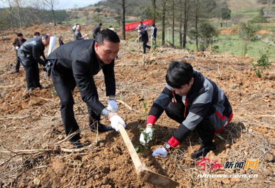 宁海新闻网讯 为认真贯彻落实县委、县政府提出的“大森林、大景区”建设要求,跃龙街道组织县、市人大代表积极参与各种护绿、播绿活动,以实际行动为“森林宁海”建设添绿。图为部分人大代表正在县才松油茶产业专业合作社种植油茶等经济林苗木。(李江林华建平摄)