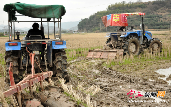 昨日下午,力洋小永农机专业合作社的社员正在驾驶拖拉机耕田。时下正是春耕春种季节,各地农户选好种子、备足化肥、农药等农资后,纷纷投入春耕春种之中,力争今年有个好收成。(李江林 李品锋摄)