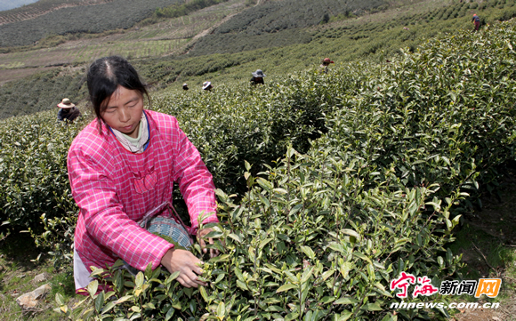 宁海新闻网讯 昨日,我县海拔850多米的望海岗上,茶农正在海云茶场的高山有机白茶基地里采摘白茶。由于海拔高气温低,该茶场的高山有机白茶于近日才开始采摘上市。据茶场主人刘正谷介绍,他精心培育的高山有机白茶目前已有150亩投产,预计产量在400公斤左右,今年头批采摘下来的十多公斤顶级有机白茶,已经被客户以每斤万元以上的价格购买。 (惠广亮华建平摄)