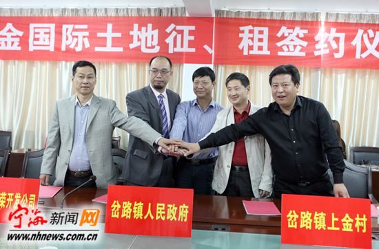 宁海新闻网讯 4月28日上午,宁波世纪繁荣旅游开发有限公司与岔路镇上金村“上金国际”旅游项目土地征、租签约仪式在岔路镇政府举行。市重点工程之一的——上金国际旅游项目工程,首期投资22.8亿元,占地面积近2800亩,由商业文化广场主景区、五星级酒店及国际商业论坛、SPA、娱乐度假中心、酒吧餐饮服务等几大块组成。该工程将在5月19日举行奠基仪式。 (李江林 何雅莉摄) |